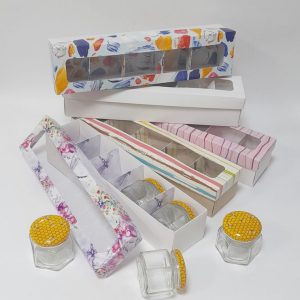 Коробка картонная 325х75х65 мм, для 5 банок меда, с окном, подарочная