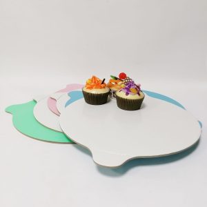 Подложки, подносы, сольерки ламинированные толщиной 0,8-3,5 мм изготовлены из прессованного влагостойкого картона, что позволяет применять ее для любых видов кондитерских изделий (тортов, пирогов, пирожных, закусок и т.д.). Могут вкладываться в упаковку, а также на ней можно подать торт к столу. Картонная подложка идеально подходит для тортов и пирогов, бенто-тортов, пирожных ,ассорти из закусок.